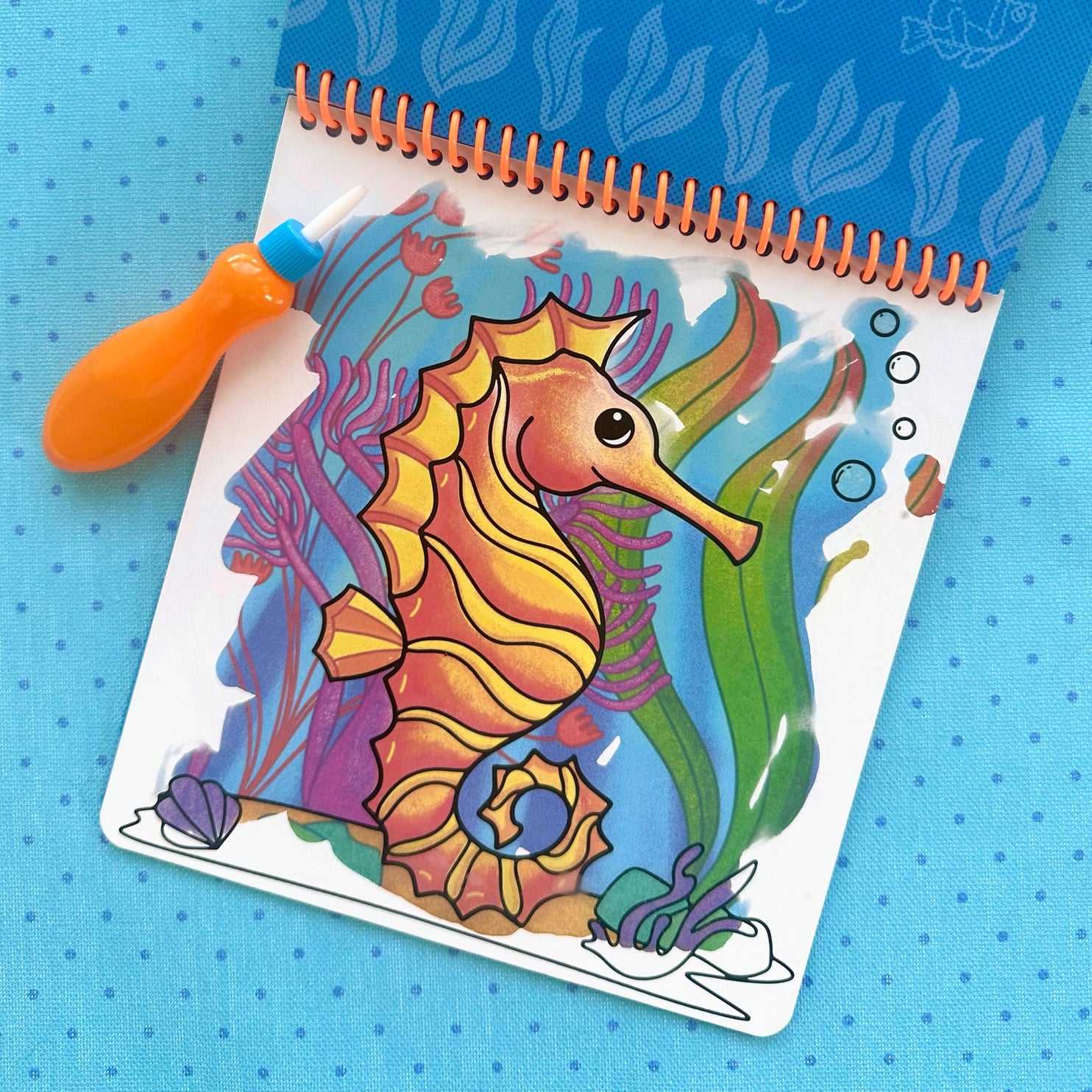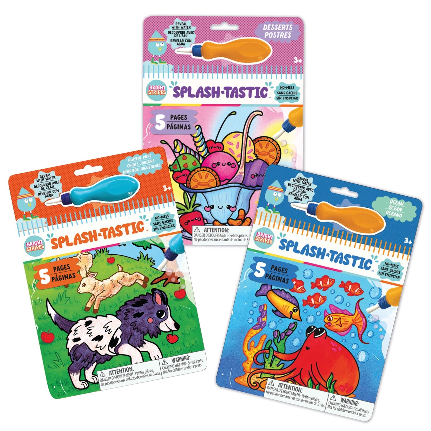 This classic activity has fun, colorful artwork to reveal, over and over again. This assortment has Ocean, Pups, and Desserts styles. 5 no-mess pages per book. Wet the board and the vibrant color appears! When it dries, the board becomes white again. So much to discover in each scene! For ages 3+.