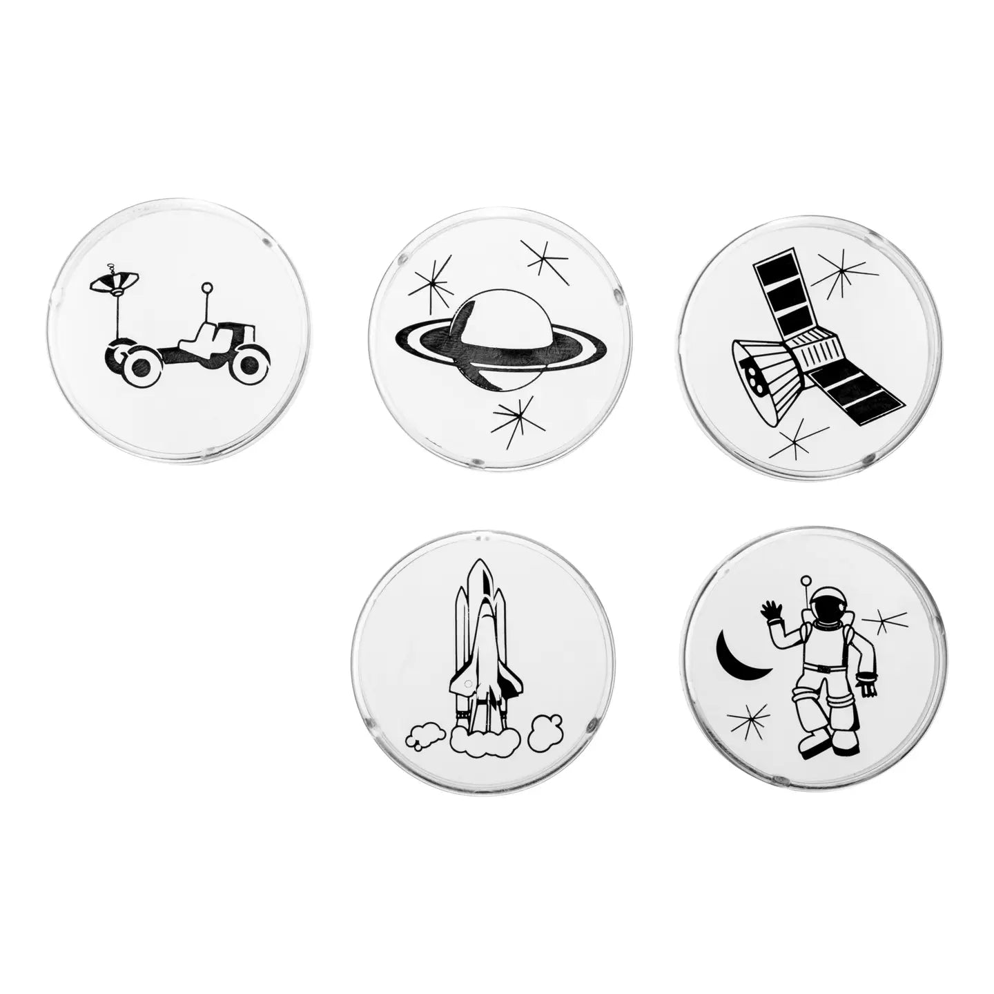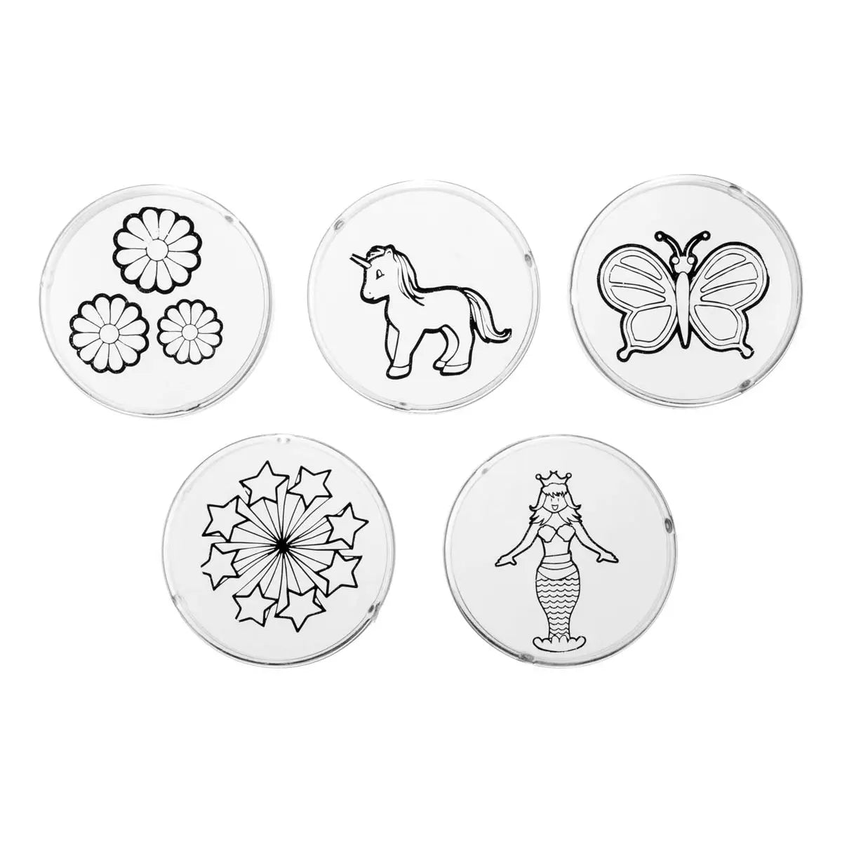 The Mini LED Picture Projector from Toysmith is a fun handheld flashlight for kids with attachable image covers. Comes in 4 different themes and colors. Theme options include Jungle, Dinosaur, Space, and Fanciful. Each Mini LED Picture Projector toy includes 1 handheld, button-activated LED light and 4 detailed image covers. Image covers may include dinosaurs, butterfly, unicorn, mermaid, flowers, giraffes, elephants, astronauts, planets, and more. Requires 3 1.5 V AG button cell batteries.