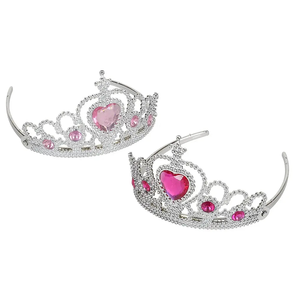 • Plastic tiaras adorned with heart-inspired jewels