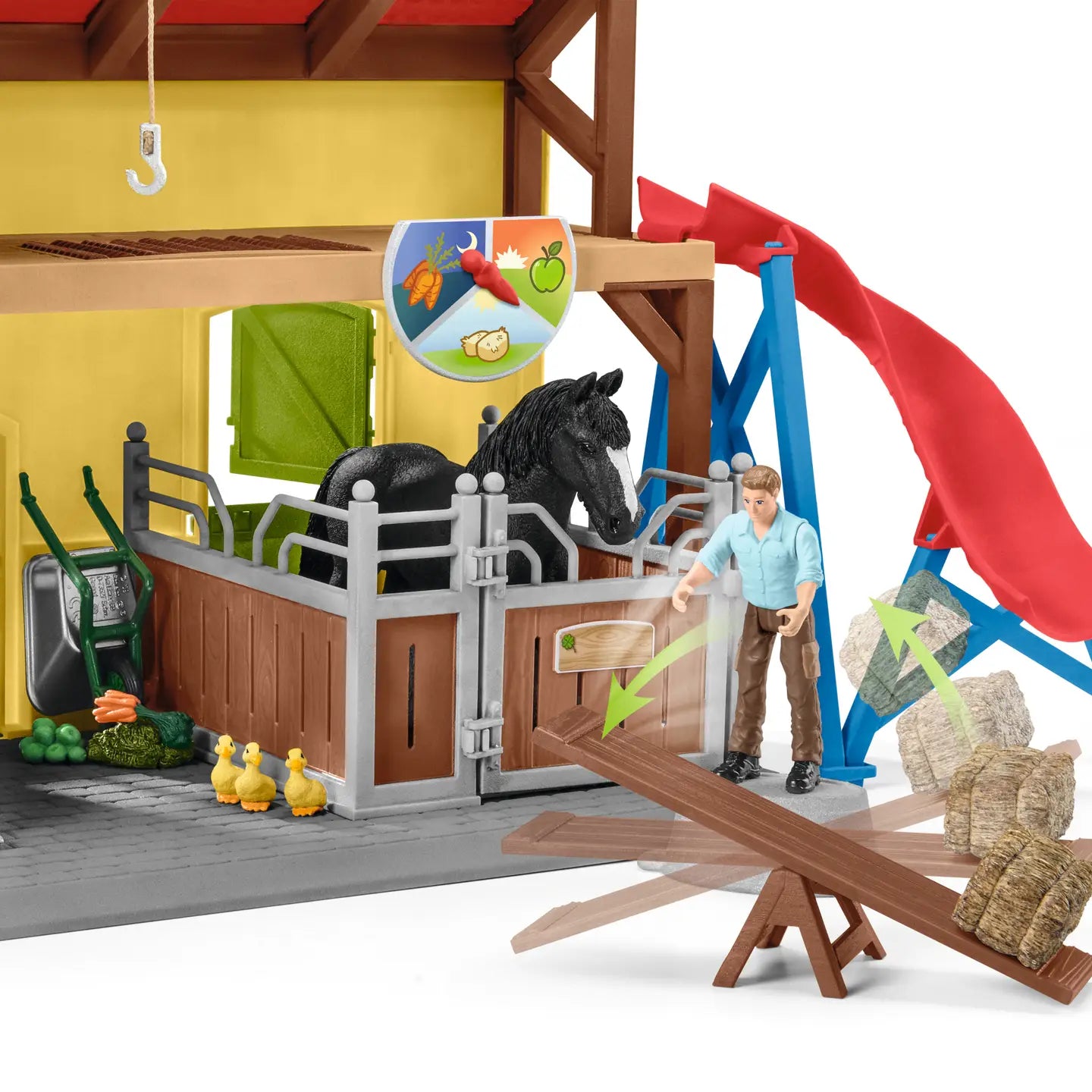 There's no better rainy-day playground than the hayloft of a barn! You can practically smell the freshly cut, sweet-smelling hay – that's how realistic the 31-piece Horse Stable playset from Schleich Farm World. Load the hay bales into the loft...use the hoist! Playset includes seven detailed animal figurines, two horse boxes, and loads of accessories from life on the farm – recommended for kids ages 3 and up. Schleich toys are great gifts for kids and are ideal for birthday gifts, Christmas gifts and holiday gifting.