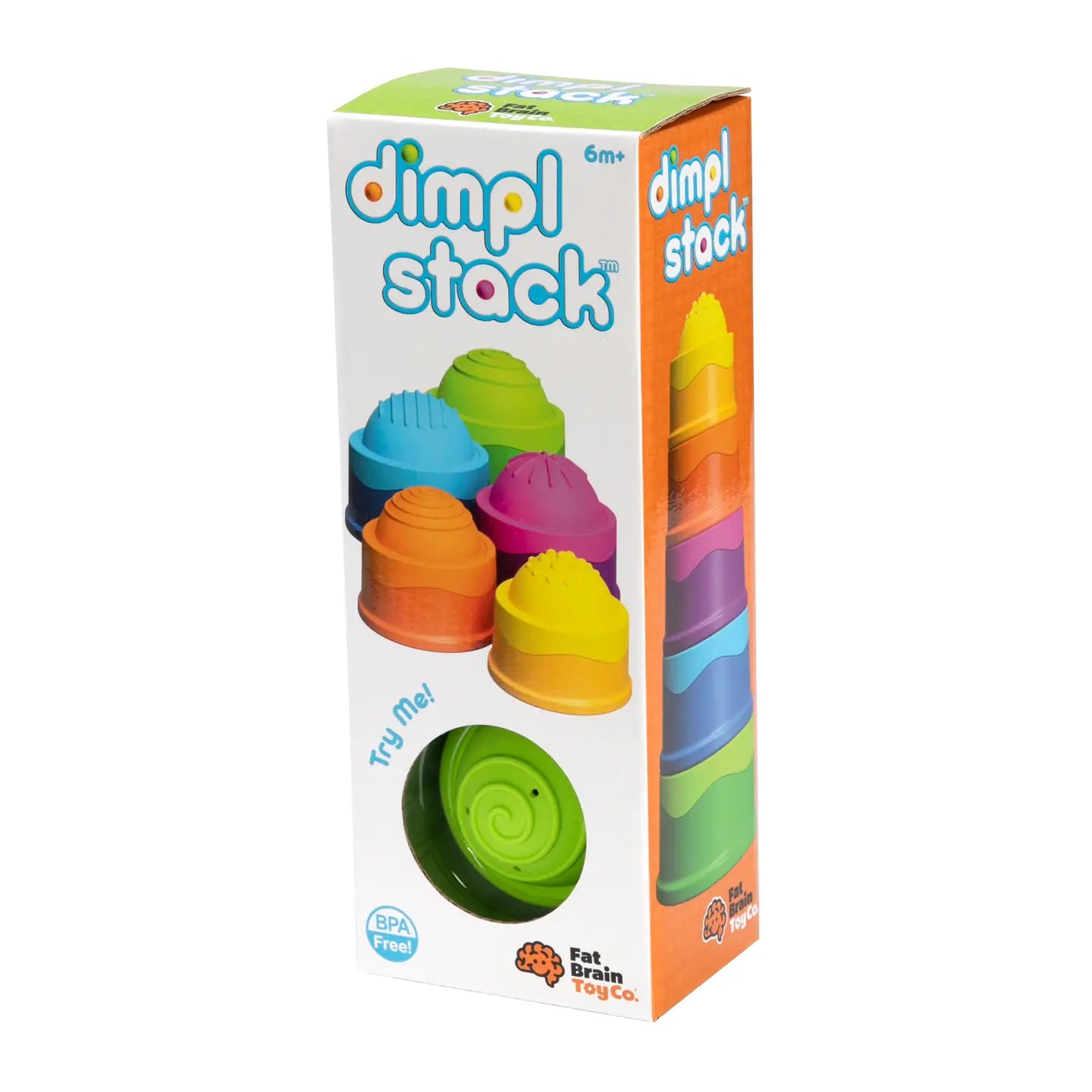 The top of each cup features a squishy silicone bubble embossed with a unique texture pattern. Little fingers will love to touch, push, and pop them again and again. Meanwhile, its unique stackability engages curious and growing minds while providing the hours of fun parents have come to expect from the entire line of Dimpl toys. Tactile fascination stacks up with Dimpl Stack!