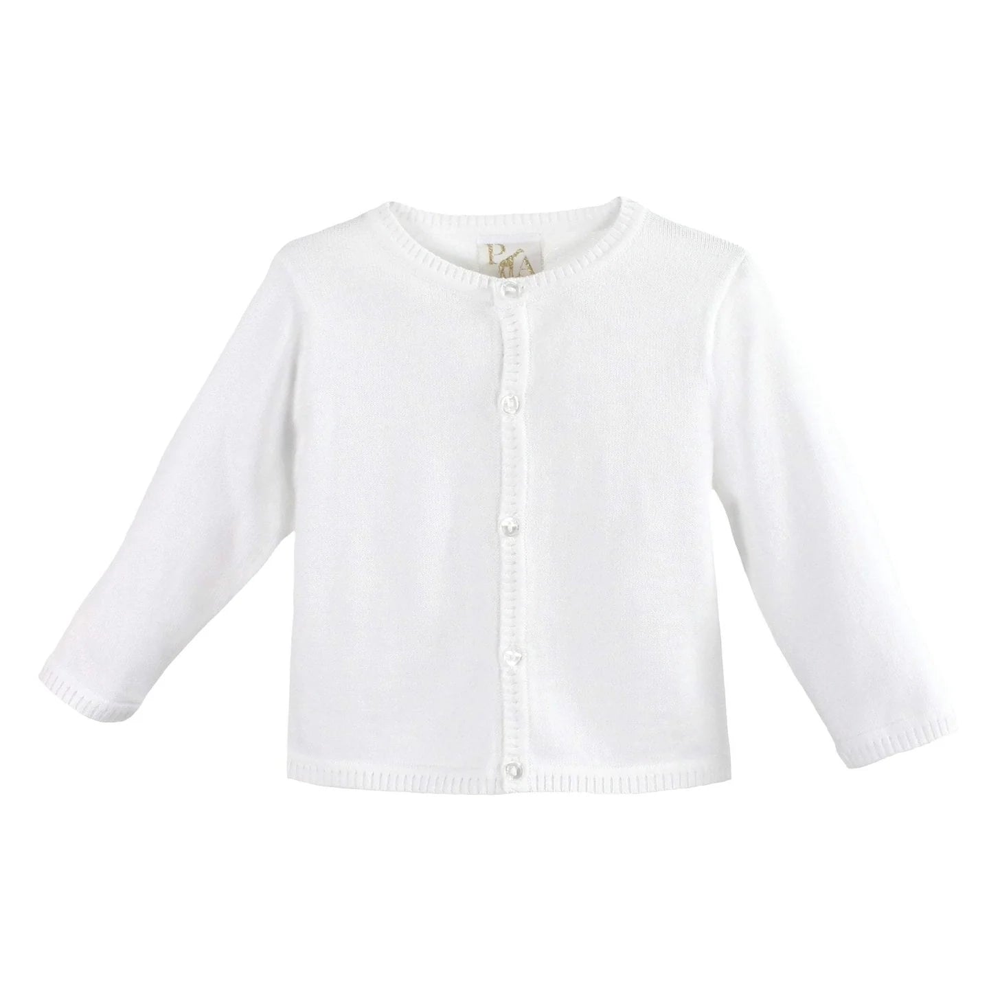 This traditional and classic ladder edge cardigan makes a beautiful accessory for family photos and special occasions. The beautifully detailed ladder edge adds a touch of interest to this already perfect basic sweater. This cardigan sweater makes the perfect addition to any outfit! The soft 100% cotton material is comfortable and easy to care for – just machine wash and tumble dry. This simple yet sweet cardigan is perfect for completing holiday outfits for Christmas or Easter and also great for church outfits and weddings too!