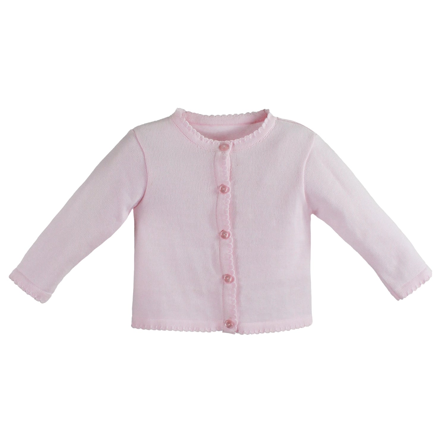 This traditional and classic scalloped edge cardigan for baby girls makes a beautiful accessory for family photos and special occasions. The beautifully detailed scallop edge adds a touch of interest to this already perfect basic sweater. The perfect addition to any dress outfit! The soft 100% cotton material is comfortable and easy to care for – just machine wash and tumble dry. This simple yet sweet cardigan is perfect for completing holiday outfits for Christmas or Easter and also great for church outfits and weddings too!