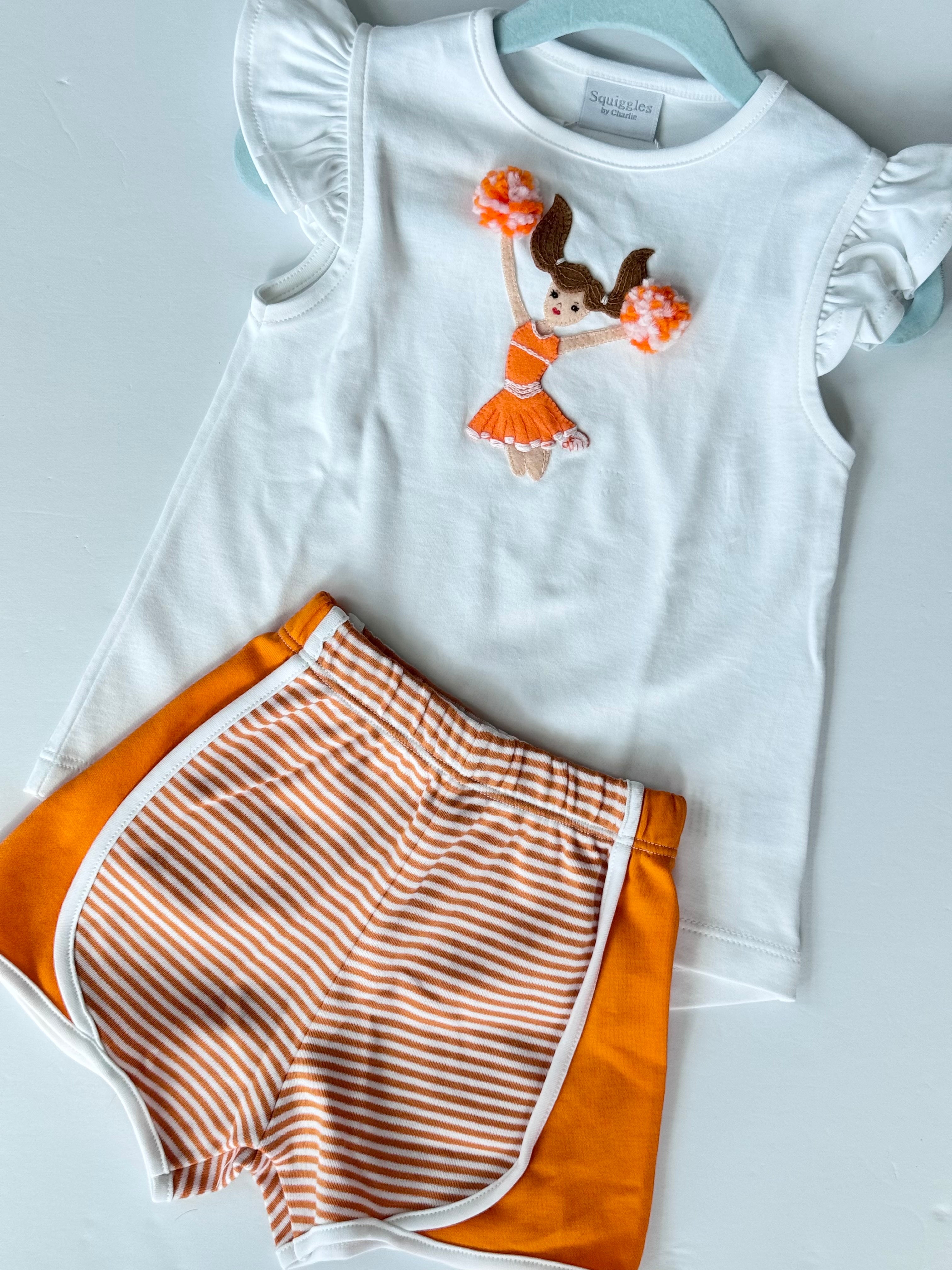 Squiggles - Tee + Panel Short Set - Orange and White Cheerleader