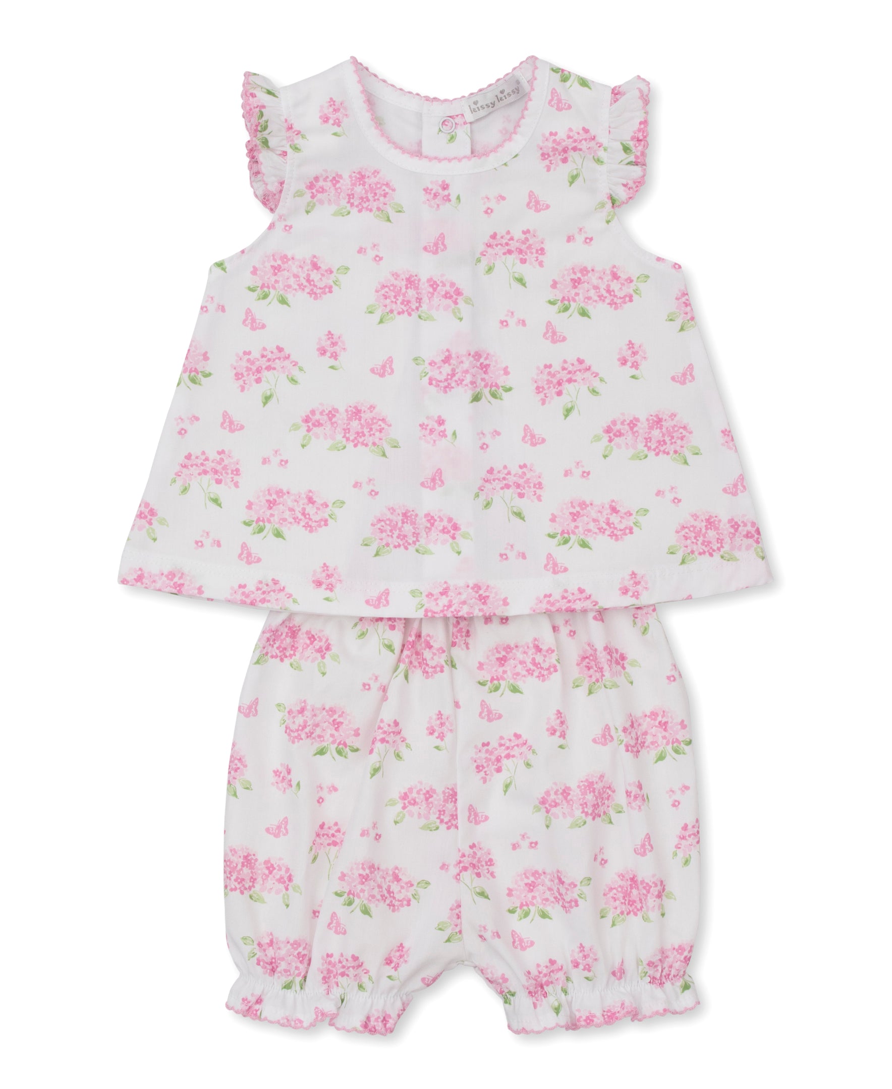 Playfully patterned with the pink hydrangeas print, this woven bloomer set is made from the softest Pima cotton for ultimate comfort for your baby.