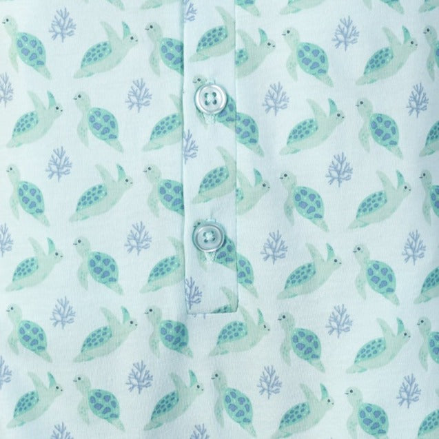 This relaxed and sporty Henley Romper has all the makings for a little one who loves to romp. A soft, lightweight jersey makes this perfect for summer days! Rough hems along the cuffs and collar give this bestselling piece a casual, beachy feel. Buttons up front and snaps along the inseam.