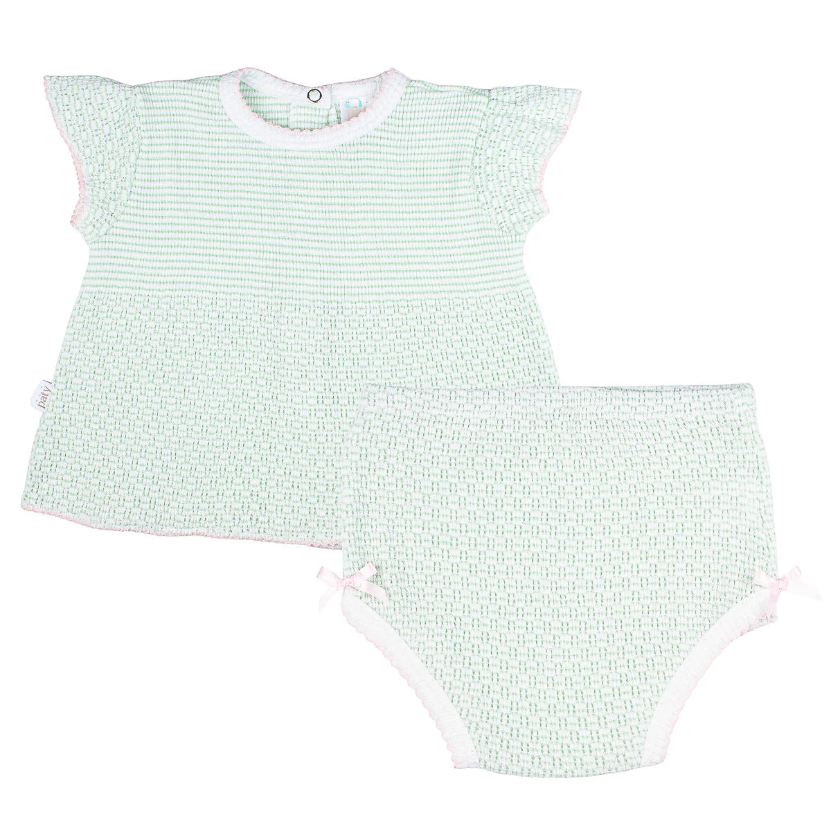 Paty - Flutter Sleeve Diaper Set - Mint with Pink Trim