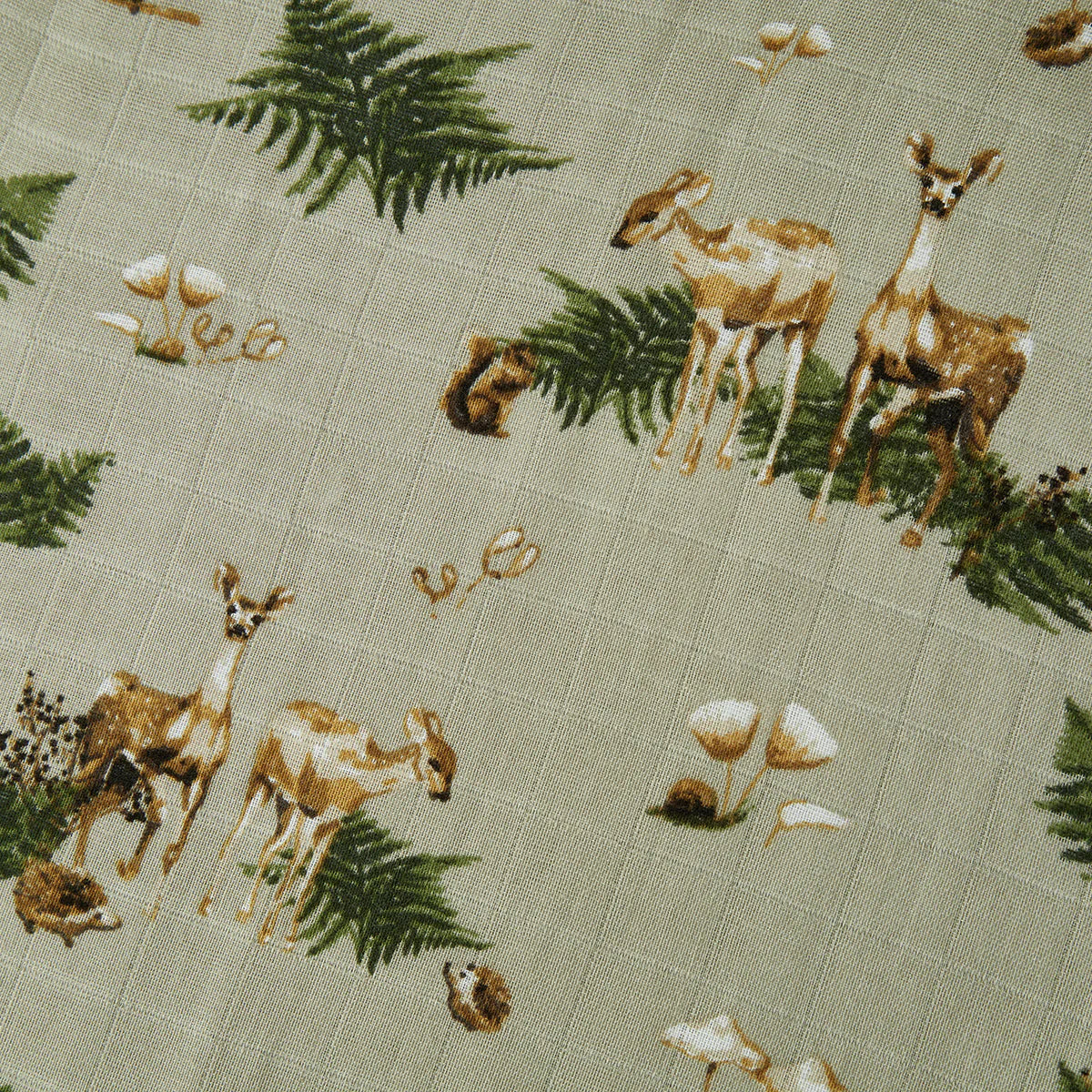 The ultimate in comfort, this generously sized Big Lovey Muslin Blanket in the Forest Party print allows for extra snuggles and cuddles.