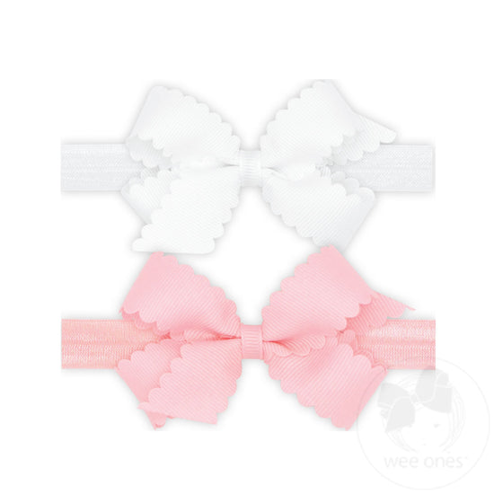 Wee Ones Bows - 2 Pack with Band - Pink and White Scalloped