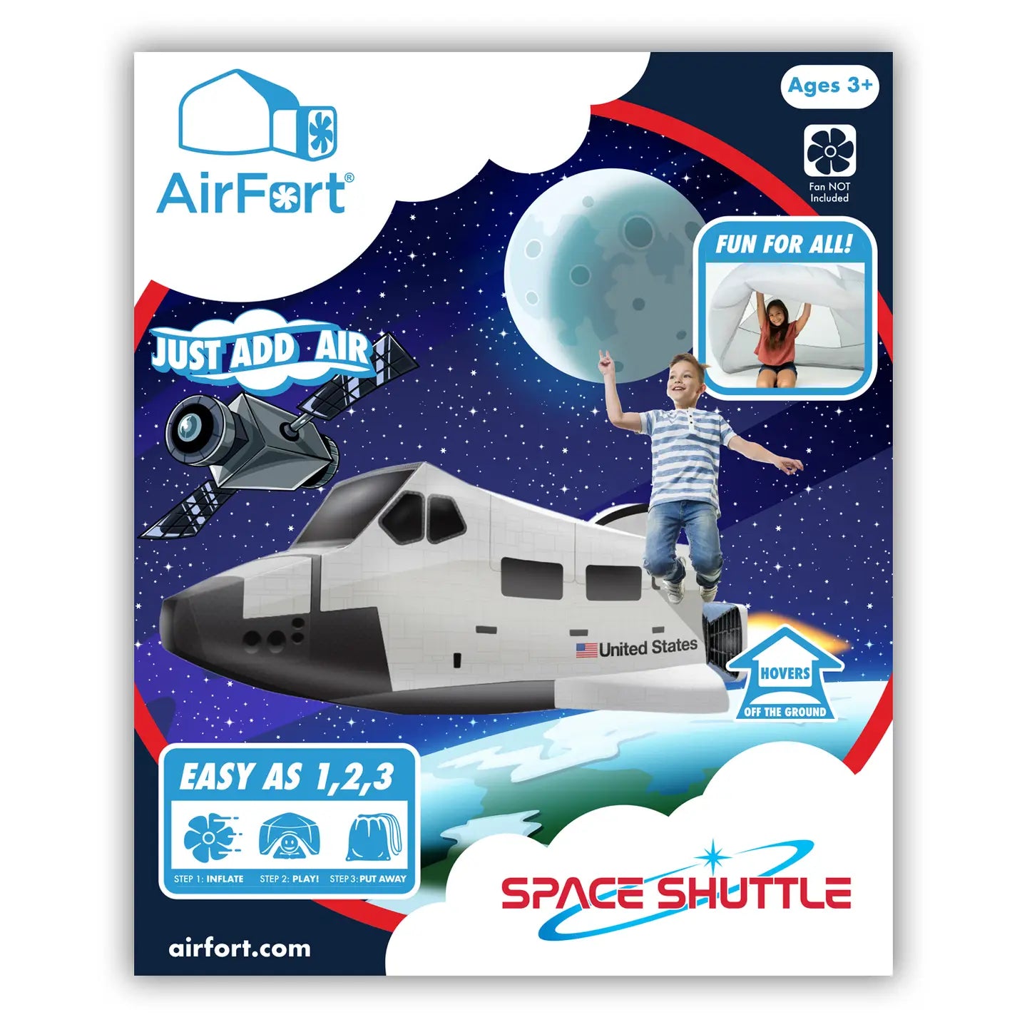 The Original AirFort - Space Shuttle Aim for the stars and blast off in your very own Space Shuttle. This space ship will have imaginations traveling at light speeds to different galaxies. Aspiring astronauts, get ready to explore the universe! Durable & breathable construction The perfect alternative to screen time Safe, worry-free forts for kids 3 & up Works with any standard box fan