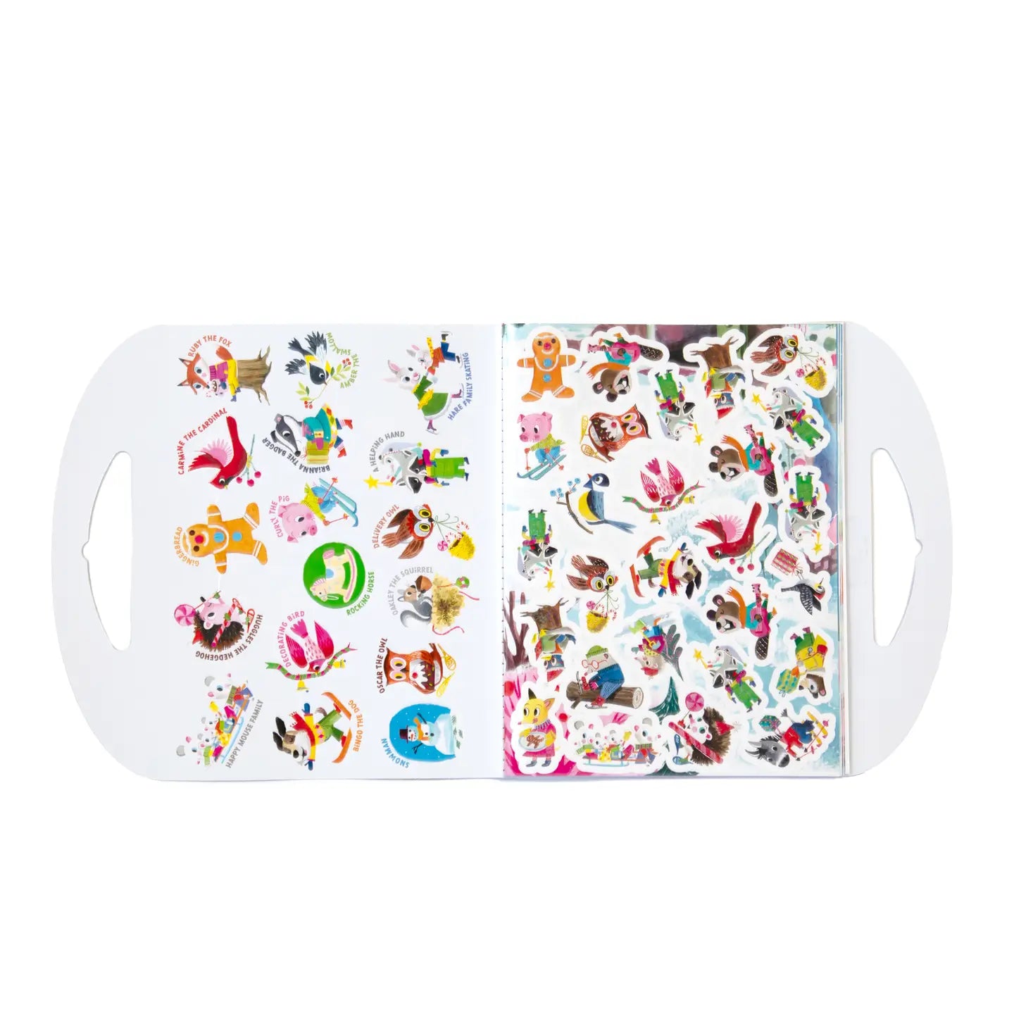 •Includes 12 pages of holiday stickers, three different sizes. Sticker book has a die-cut handle making it easy for on the go fun. A perfect stocking stuffer for the holidays.