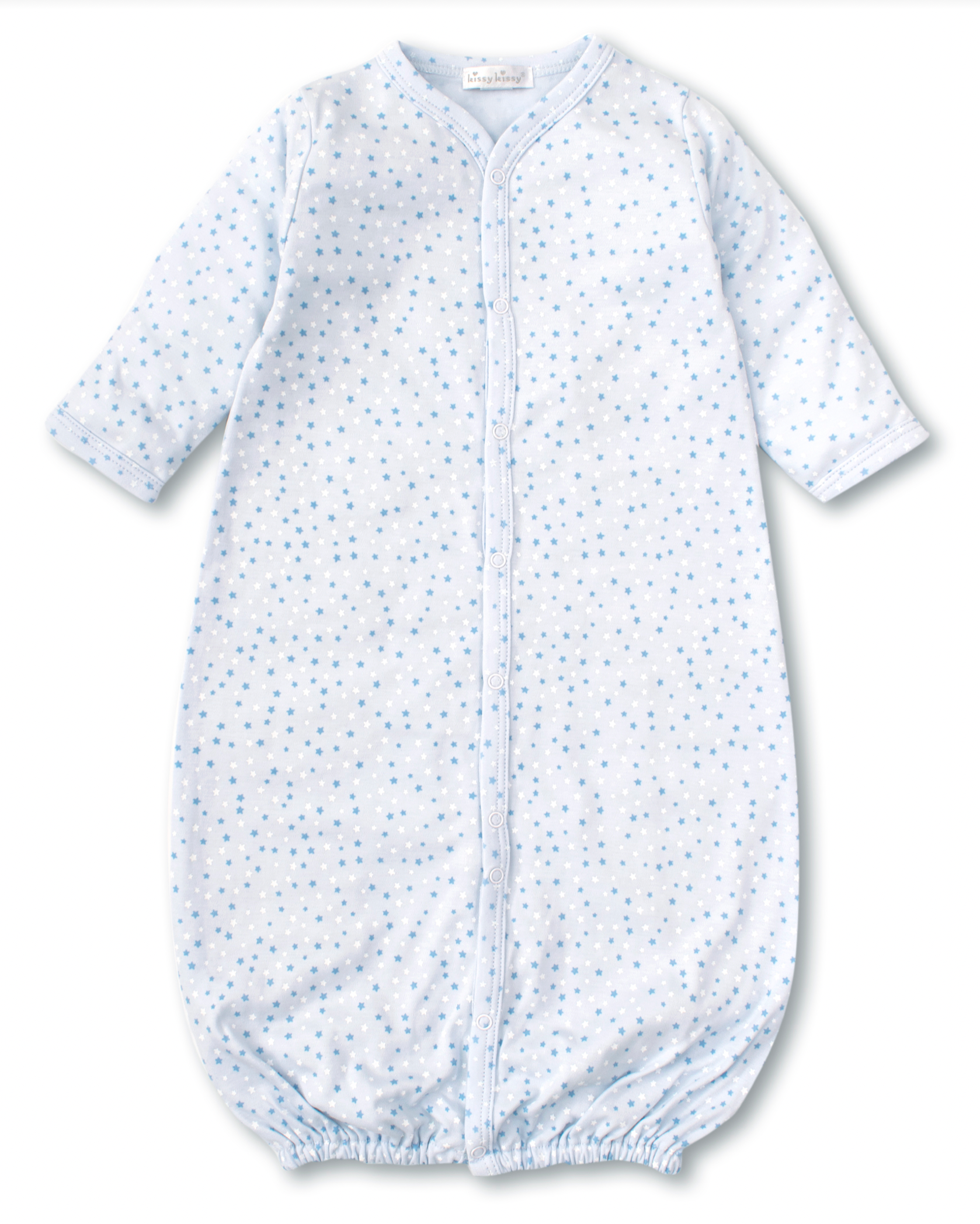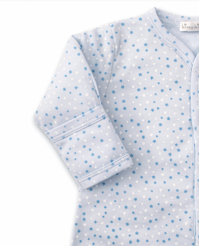 A fun star theme patterns this cozy gown for your baby boy. Snaps on legs allow for easy conversion to playsuit; made from the softest Pima cotton for ultimate comfort.