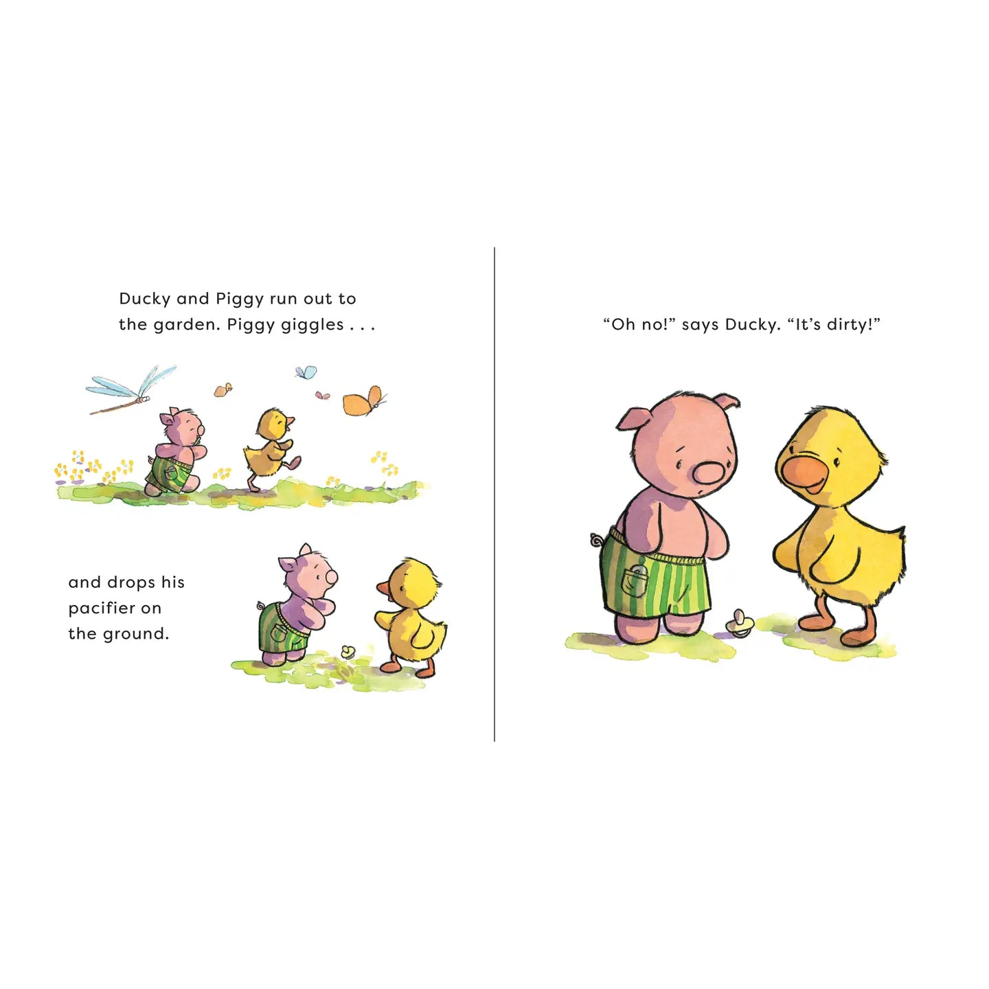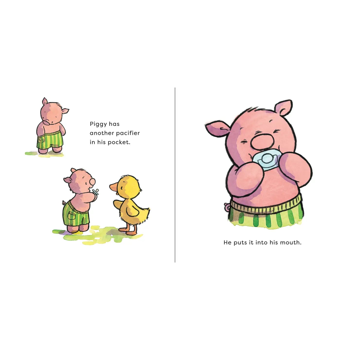 Piggy and Ducky are playing a game, but Piggy's pacifier keeps getting in the way. As the two friends play, will Ducky be able to persuade Piggy to say bye-bye to his pacifier? Adorable characters and a playful story encourage little ones to give up their pacifier, as they easily transition to the next growing-up stage.