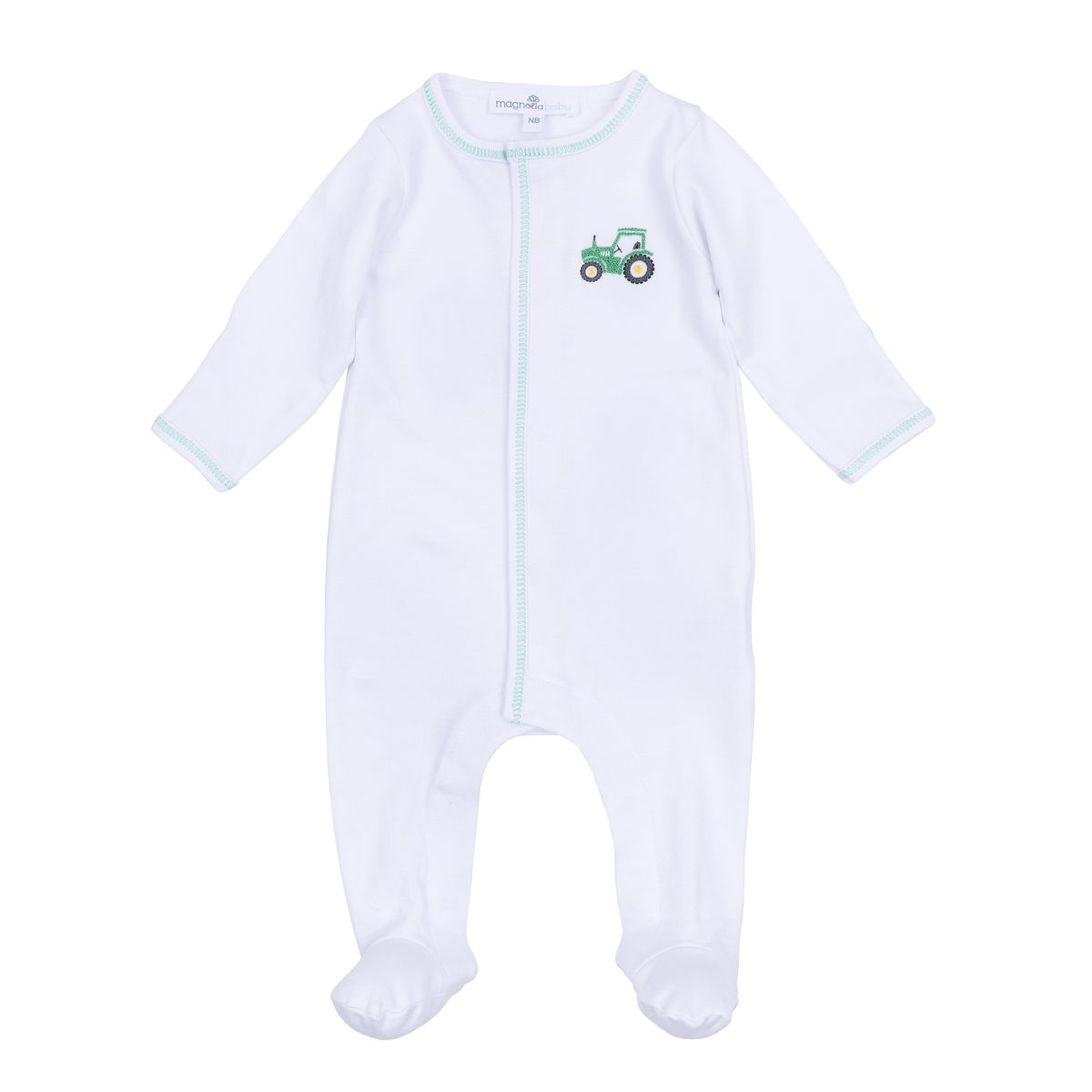 Magnolia Baby - Footie - Embroidered Little Green Tractor