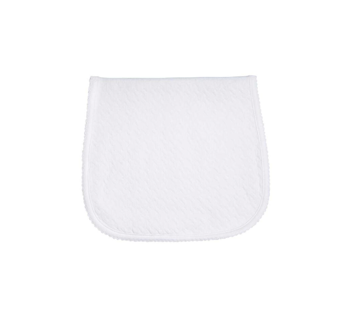 This burp cloth is made of elegant basket weave fabric with picot trim details. Just like most things, the quality of cotton can vary greatly. The true secret behind the softness and quality of the Nella Pima products comes from the northern coastal valleys of Peru, known as Peruvian Pima Cotton. The properties of this fiber create for a more durable fabric, that gives it it's unparalleled luxurious touch that is most desired.