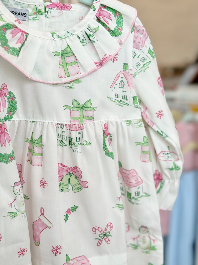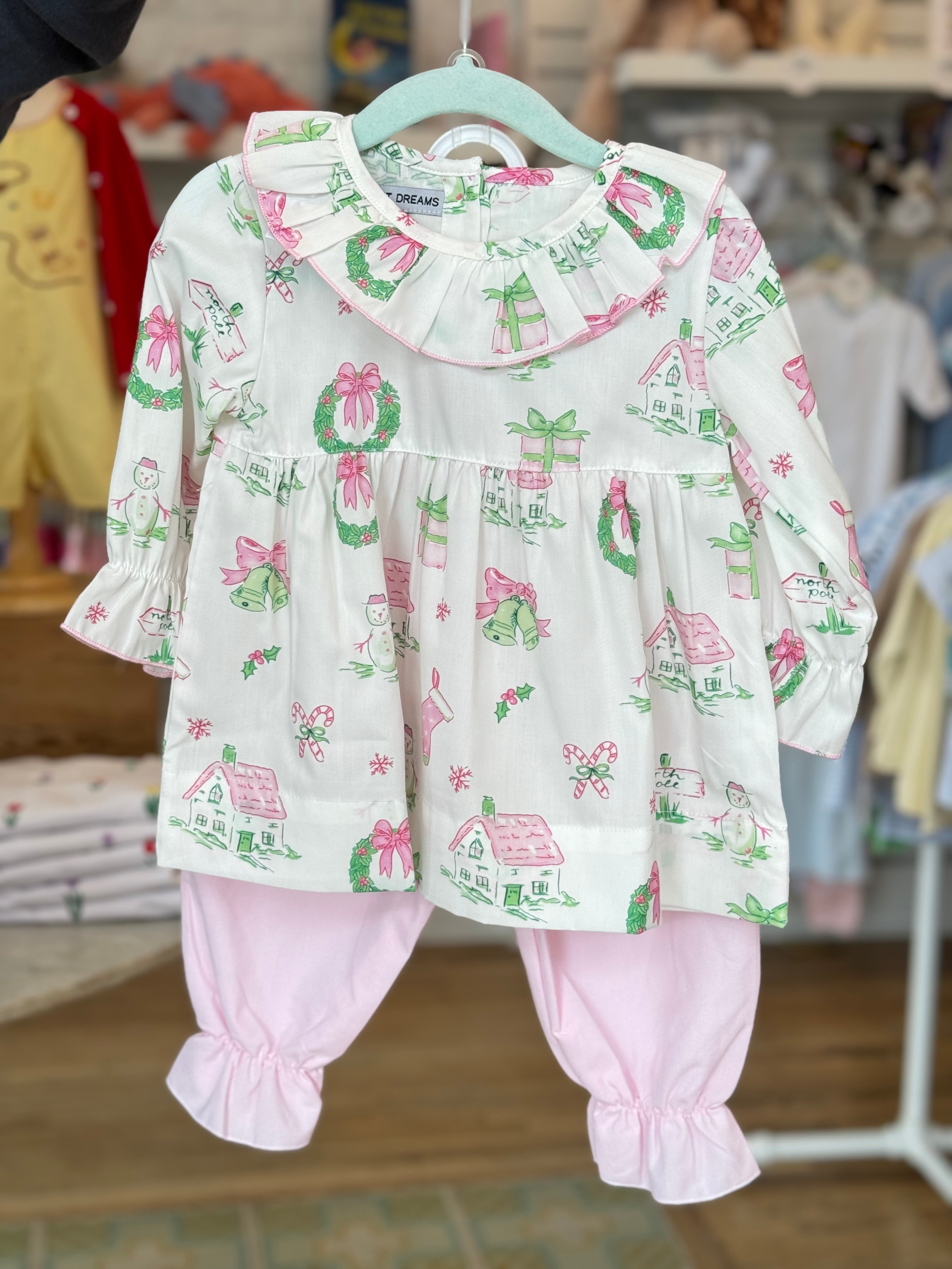 Blouse + Pant Set - Pink and Green Christmas Toile