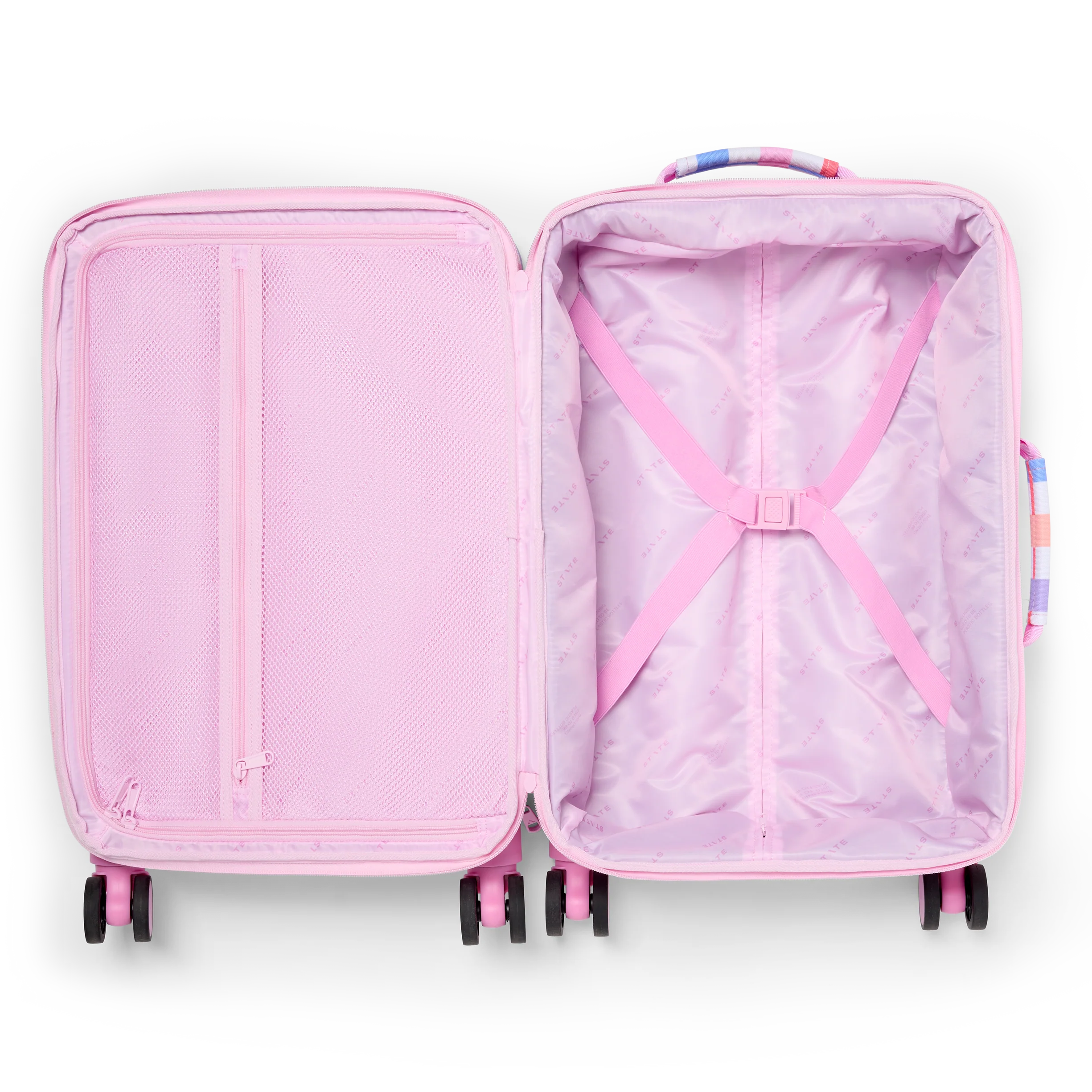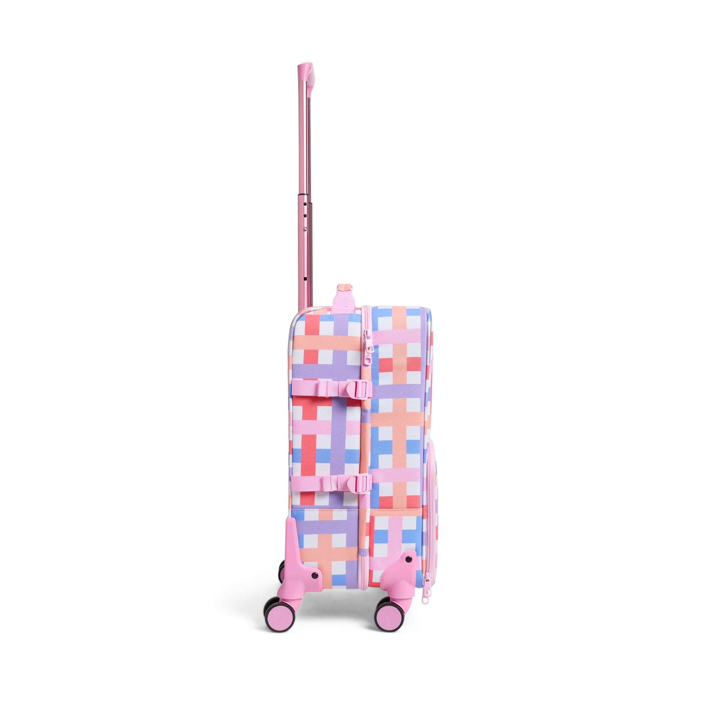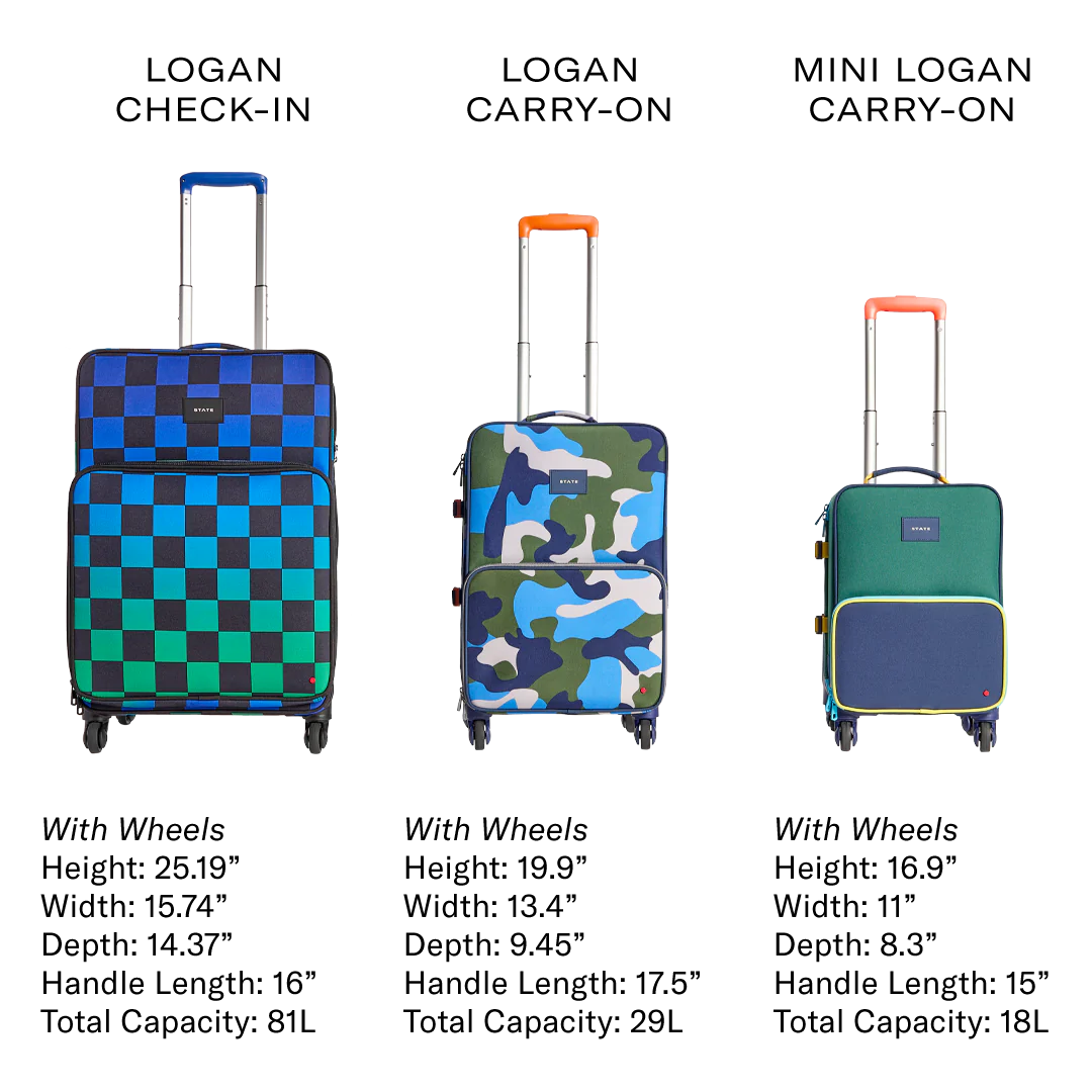 Keep travel fun for your kid and functional for you. The Logan Carry-On features smooth, 360° spinner wheels, a kid-friendly adjustable handle, and thoughtful functionality designed to keep everything in place—plus a bold, stand-out design that is just as unique as your kid.