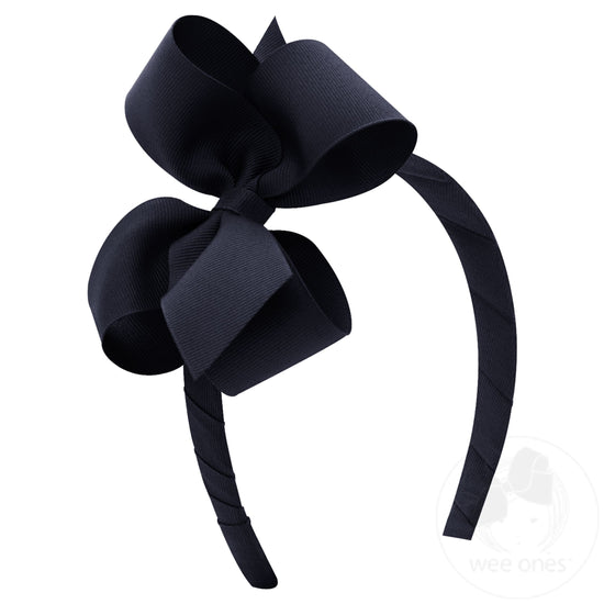 Great for school days, playing with friends, parties and other special occasions, this grosgrain-wrapped 3/4" wide headband with matching bow keeps her hair in place and in style.